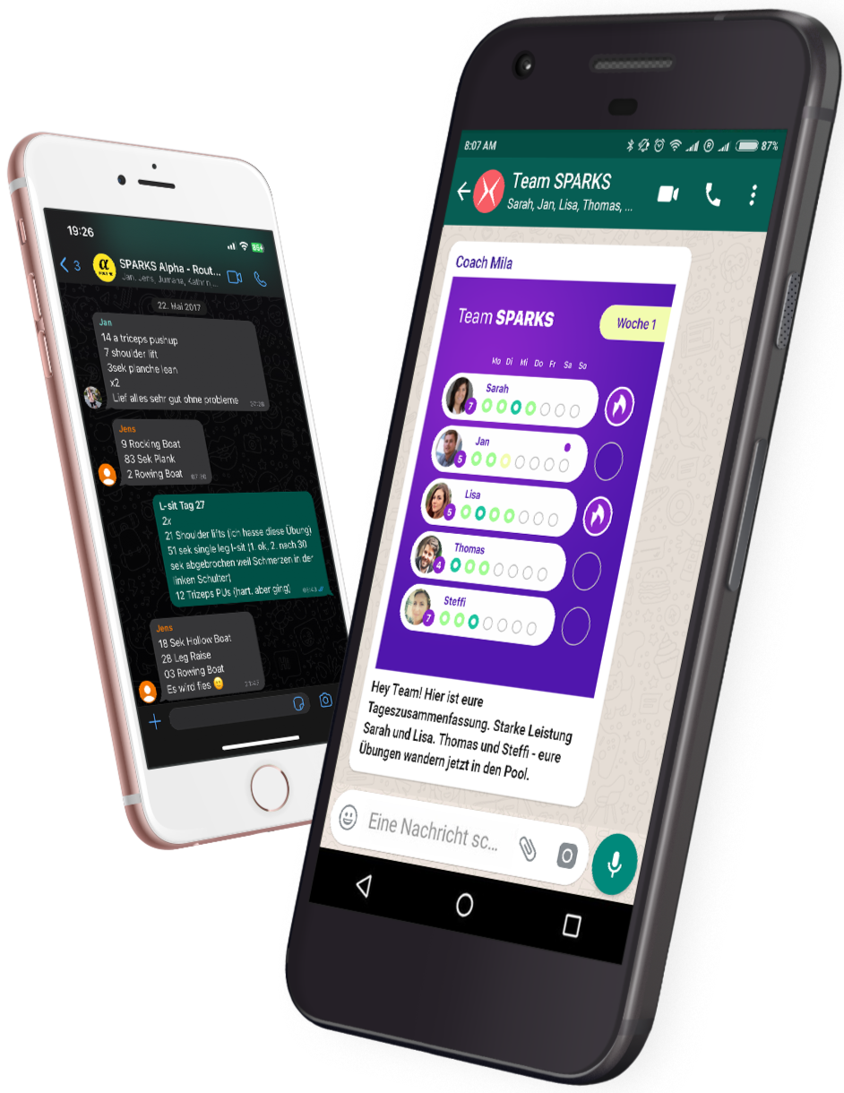 SPARKS Routine ist ein auf WhatsApp basierendes, individuell auf dich abgestimmtes Motivationsprogramm, das dir hilft regelmäßiges Trainieren zur Gewohnheit zu machen.